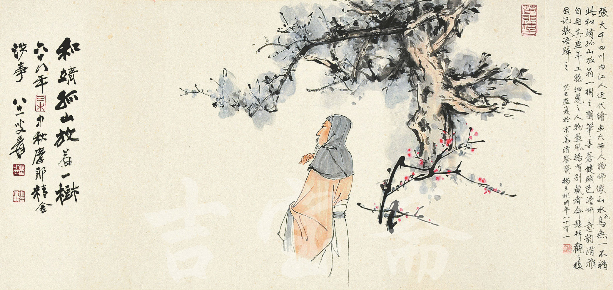 张大千国画——《观梅》